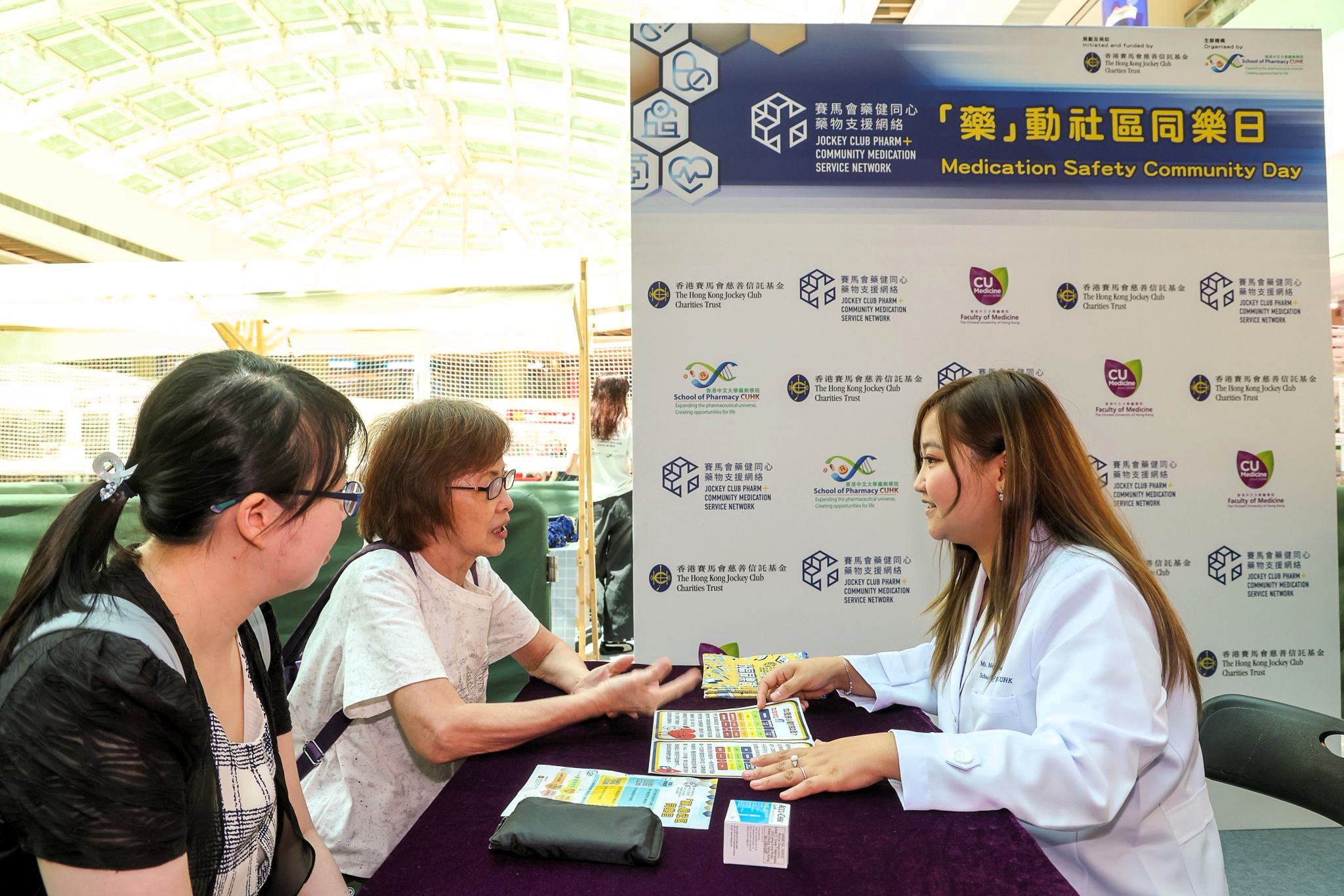 Initiated and funded by the Hong Kong Jockey Club Charities Trust, with the School of Pharmacy at The Chinese University of Hong Kong (CUHK) as partner institution, the five-year project “Jockey Club PHARM+ Community Medication Service Network” (the “Project”) organised the “Medication Safety Community Day” health promotional event on 6-7 Sept at MCP Discovery (Metro City Plaza Phase 3). The event seeks to enhance medication literacy and self-management of health conditions by promoting the professional services of community pharmacists, thereby raising public health awareness in the community.